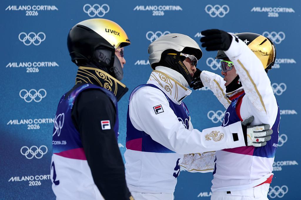 北京时间2月20日,米兰冬奥会自由式滑雪男子空中技巧决赛第二轮,齐广璞纵身一跃,重重落在雪地之上。